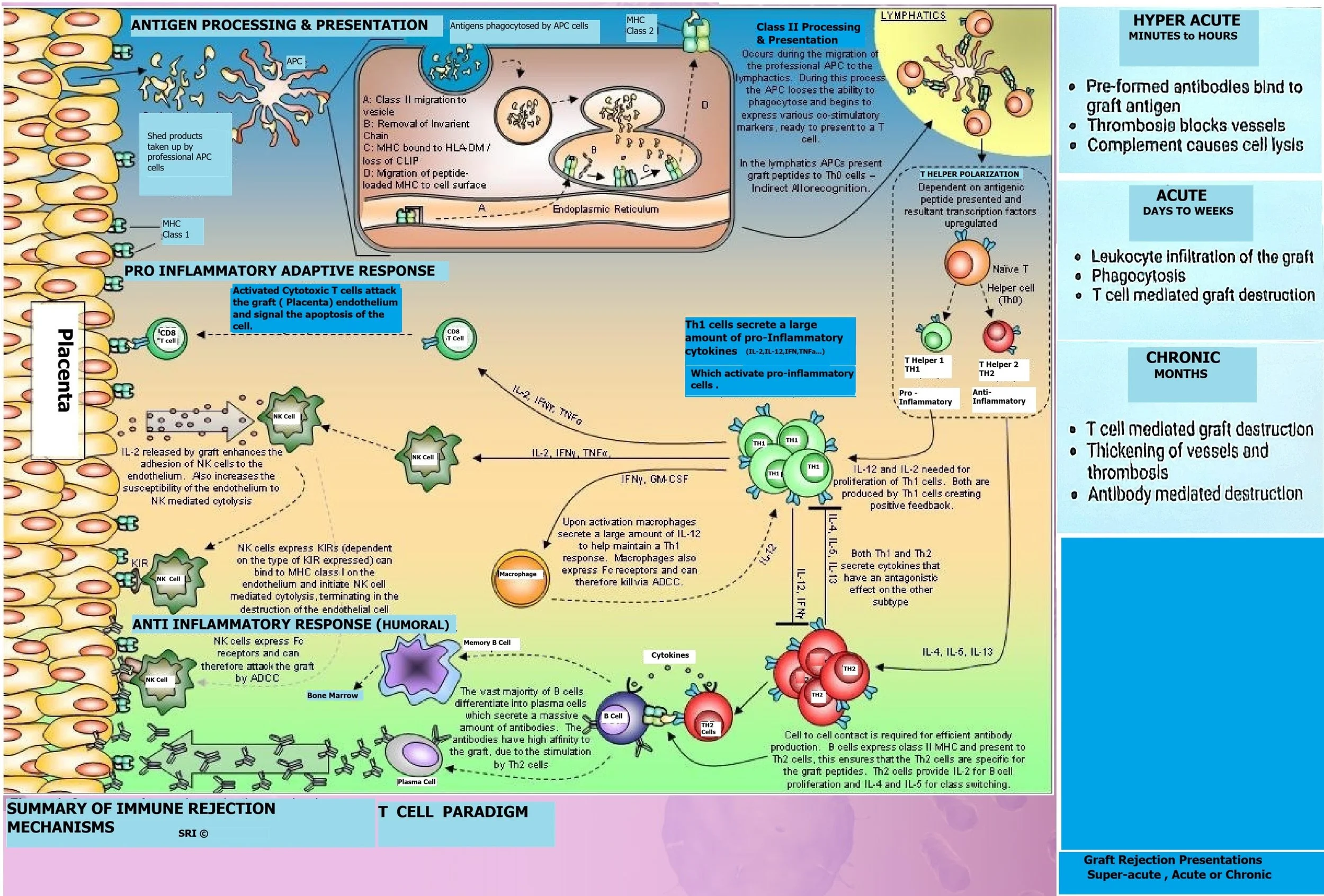 Inflammatory responses can develop at the maternal-foetal interface of the placenta. Loss of integrity at that interface may result in foetal antigens being presented to the maternal immune system. Additionally, ischaemic processes can release mediators that activate the maternal immune system.